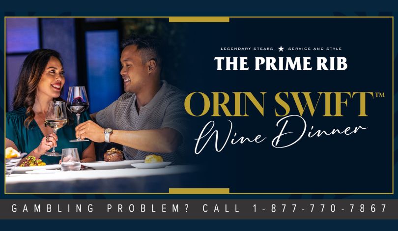 Raise a glass to artistry in every pour. Join us at The Prime Rib® for an exclusive wine dinner with Orin Swift Wines for an indulgent five course meal paired their beloved selections. Limited tickets available. Reserve your spot today!