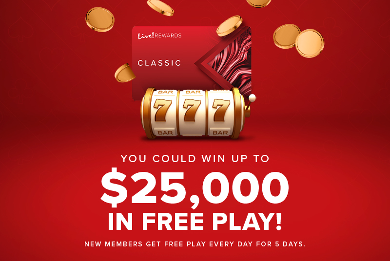 Sign up for Live! Rewards® and you could win up to $25,000 in Free Play!